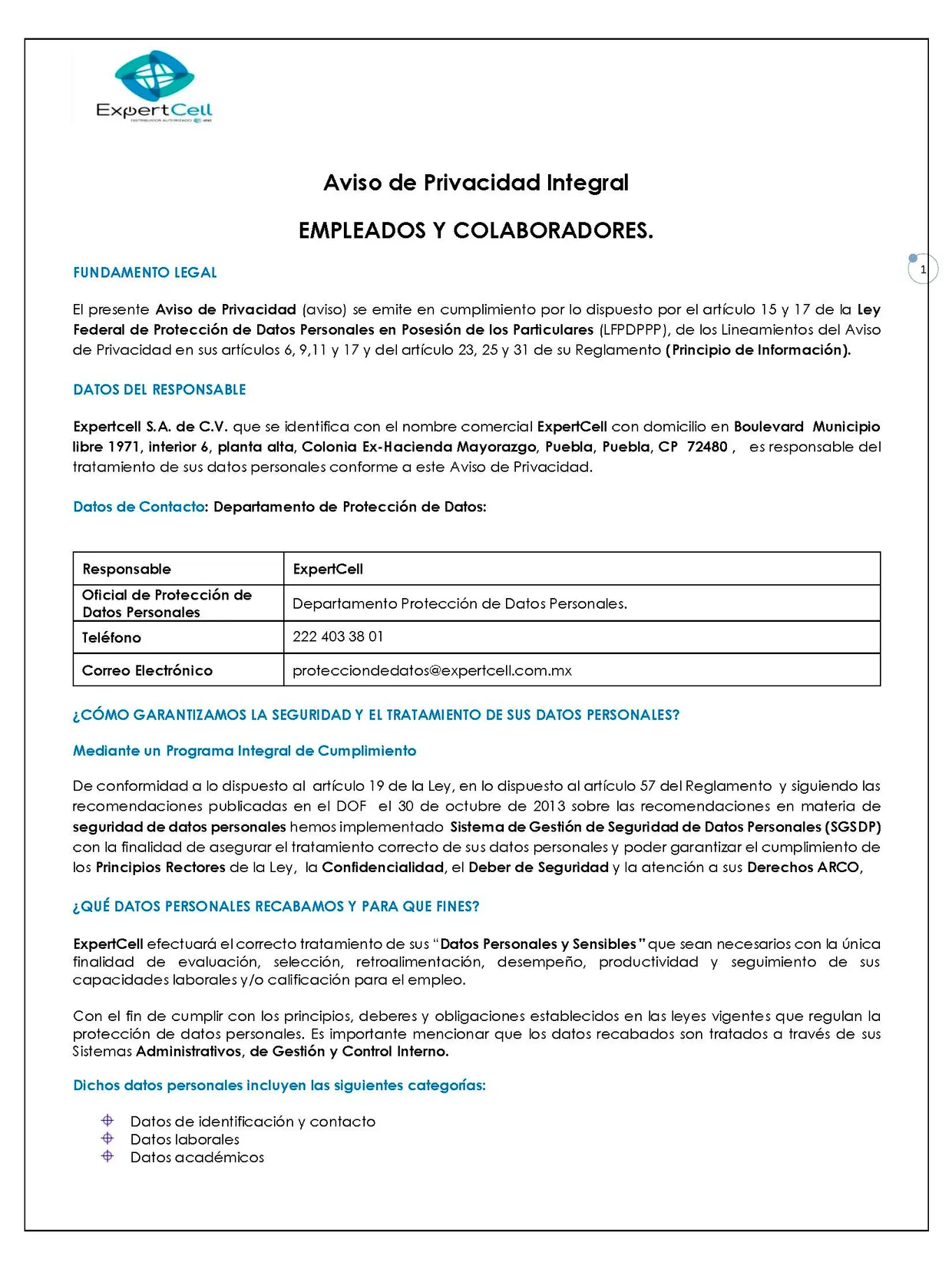Aviso de Privacidad Integral EMPLEADOS Y COLABORADORES.